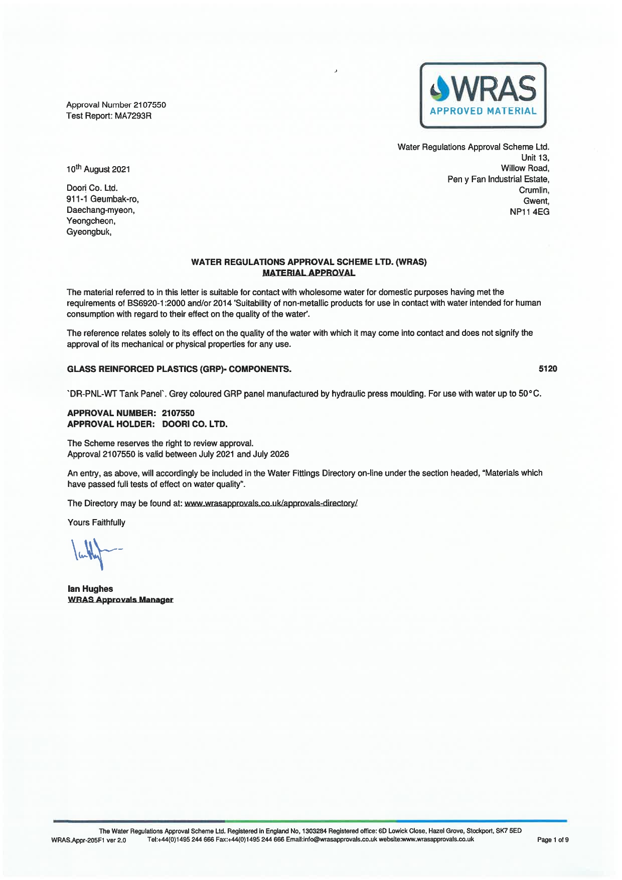WRAS Certificate